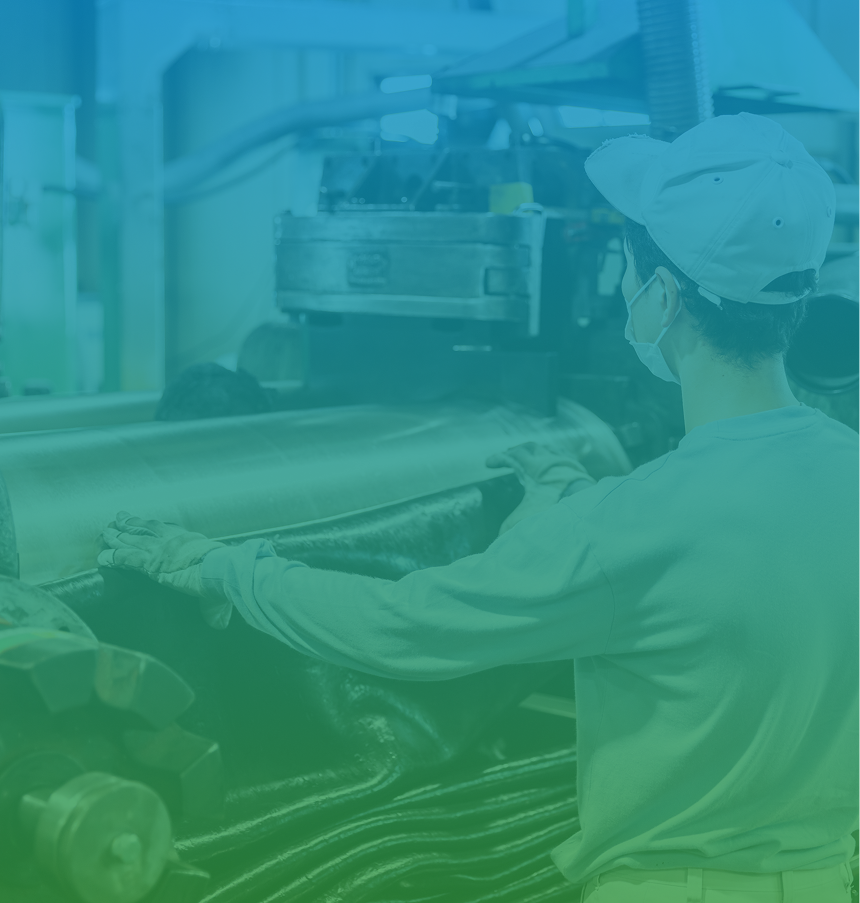 2001年にはゴム練りからの一貫生産体制を確立し、現地拠点を自立させました。 -