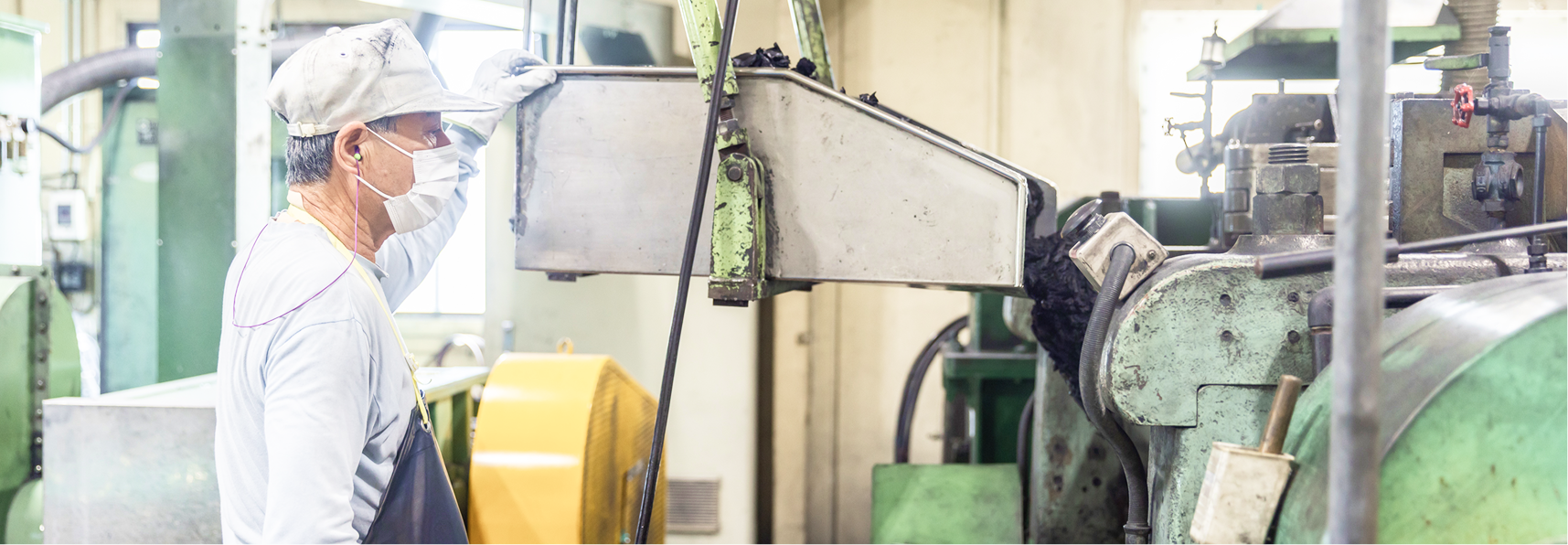 製造には大きく分けてゴム練りを行う精練業務、金型を使った成形を行う成形業務、成形されたゴム部品の仕上・検査業務等があります。