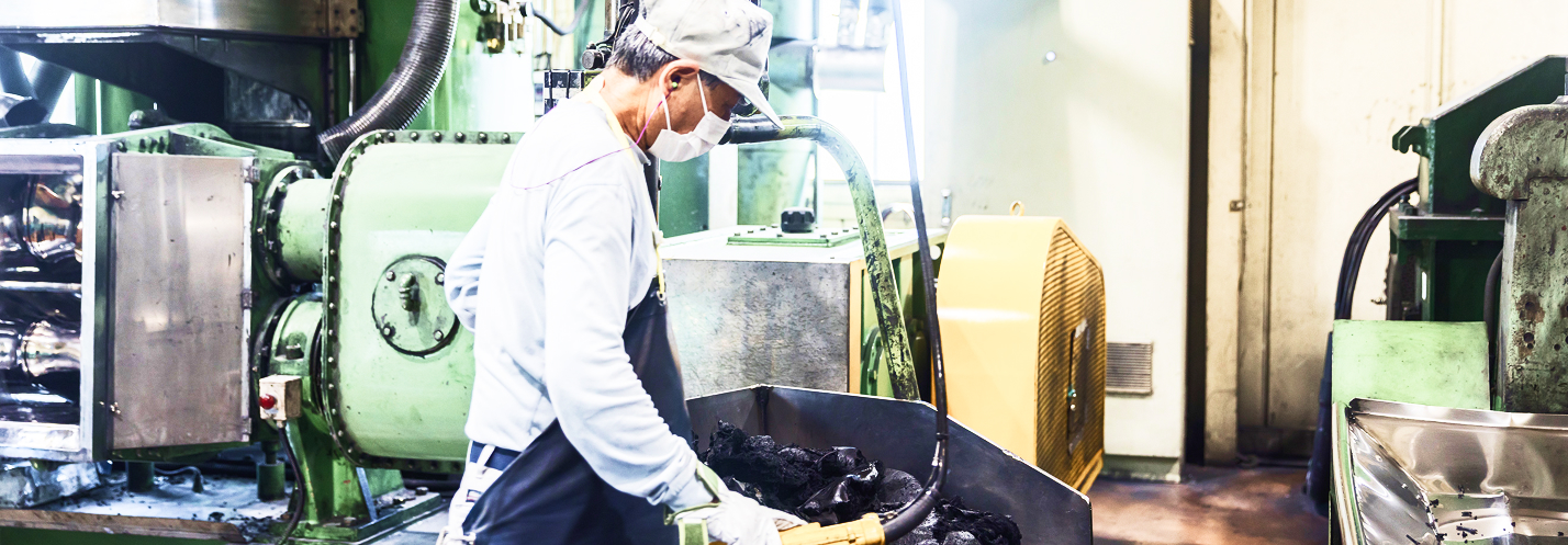 自社独自の配合システムを導入し、誤配合を防止しています。 材料は資材・ロットまでさかのぼれるトレーサビリティを確立し、さらには生産ラインは専用の掃除ゴムを用いて清掃管理を徹底し、安定した品質を支えています。